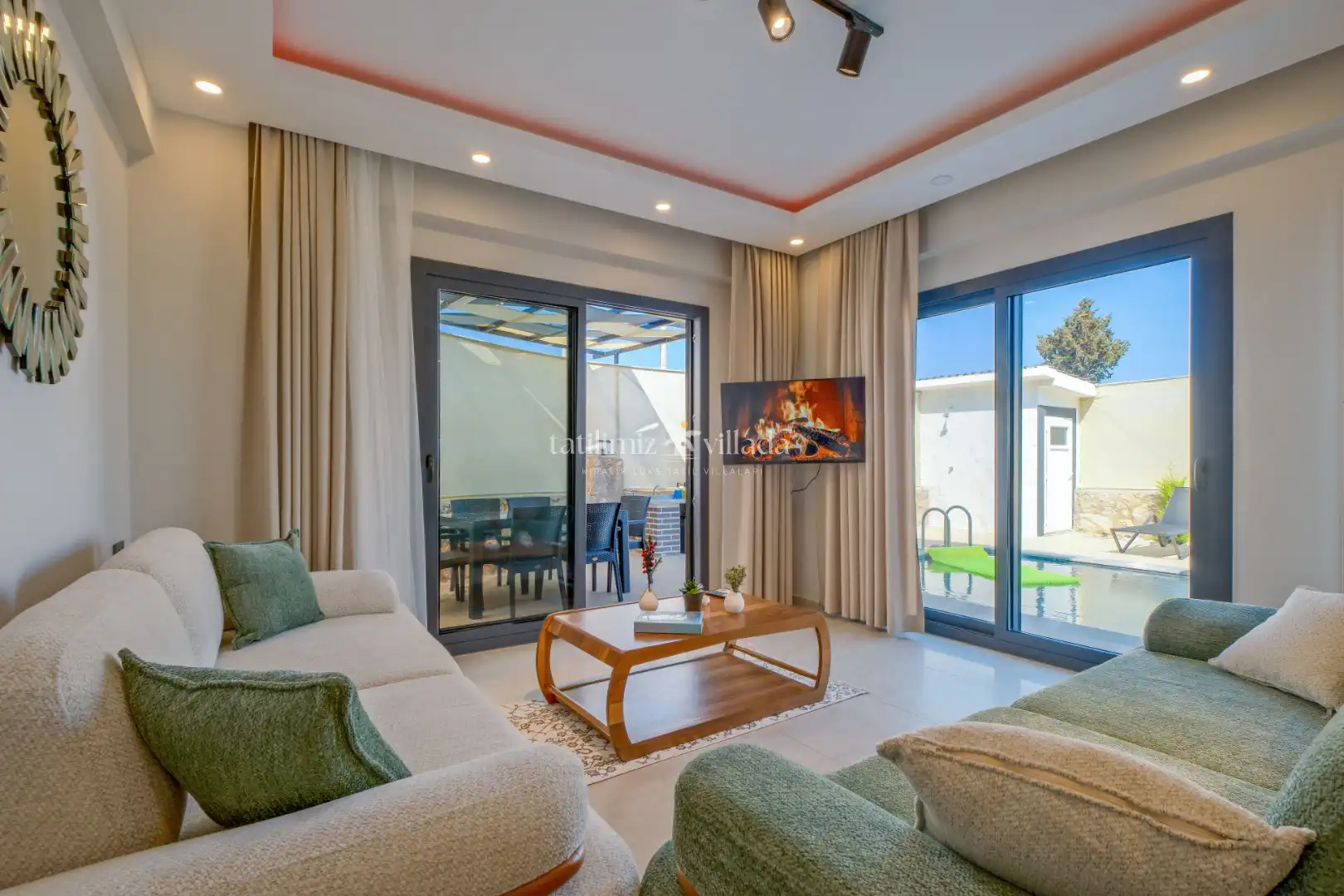Villa Zeynur 1, doğa ile iç içe konumda yer alan dubleks 3+1 yapısı ve 6 kişilik konaklama kapasitesi ile konforlu bir tatil imkânı sunmaktadır. Açık mutfak konseptiyle dizayn edilen villamızda, tüm mutfak araç gereçleri eksiksiz şekilde bulunmaktadır. Geniş ve ferah salonunda TV, oturma grubu ve ihtiyaç duyabileceğiniz temel eşyalar yer almaktadır.